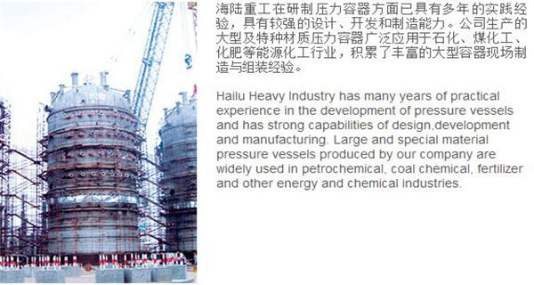 蘇州海陸重工股份有限公司位于江蘇省張家港市開(kāi)發(fā)區(qū),是國(guó)內(nèi)一流的節(jié)能環(huán)保設(shè)備的專(zhuān)業(yè)設(shè)計(jì)制造企業(yè),目前并已初步形成鍋爐產(chǎn)品、大型壓力容器、核電設(shè)備、低溫產(chǎn)品、環(huán)保工程共同發(fā)展的業(yè)務(wù)格局。公司創(chuàng)建于1956年,注冊(cè)資本51640萬(wàn)元,占地面積近50萬(wàn)平米。公司下設(shè)八個(gè)控股子公司,一個(gè)余熱鍋爐研究所,在瑞士、北京、武漢、南京、上海、杭州、廣州等地設(shè)立分支機(jī)構(gòu),擁有雄厚的研發(fā)實(shí)力。公司秉承“科技領(lǐng)航、業(yè)界先鋒”的發(fā)展理念,注重研究廢熱、余熱利用和環(huán)境保護(hù)相結(jié)合的新技術(shù)研發(fā),自主設(shè)計(jì)能力居同行前列;公司承擔(dān)過(guò)國(guó)家863計(jì)劃,江蘇省科技成果轉(zhuǎn)化專(zhuān)項(xiàng)資金,榮獲國(guó)家科技進(jìn)步二等獎(jiǎng),產(chǎn)品擁有核心自主知識(shí)產(chǎn)權(quán)并取得專(zhuān)利50多項(xiàng);公司推行國(guó)際先進(jìn)的管理體系標(biāo)準(zhǔn)和認(rèn)證,擁有 A級(jí)鍋爐制造許可證,A1、A2、A3級(jí)壓力容器設(shè)計(jì)和制造許可證,取得了民用核承壓設(shè)備制造資格許可證、美國(guó)機(jī)械工程師學(xué)會(huì)(ASME)“S”、“U”鋼印,通過(guò)了ISO9001質(zhì)量體系認(rèn)證、健康體系認(rèn)證和14000環(huán)境體系認(rèn)證;公司設(shè)備先進(jìn),裝備精良,專(zhuān)業(yè)嚴(yán)謹(jǐn)?shù)闹圃炖砟畲蛟斐銎焚|(zhì)非凡、質(zhì)量一流的“海陸”品牌聲譽(yù)。